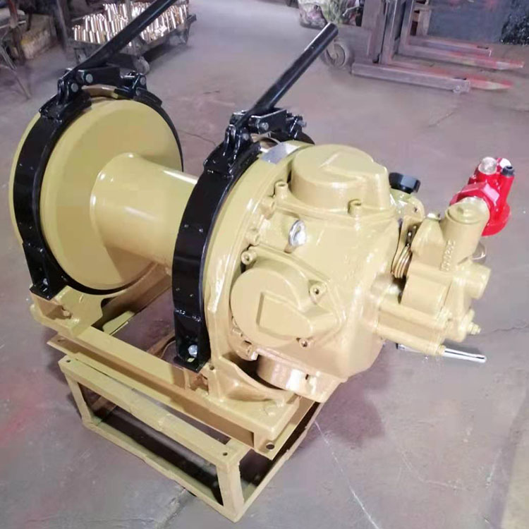 絞車由馬達(dá)總成(氣動(dòng)機(jī))、制動(dòng)器總成、減速機(jī)構(gòu)、卷筒、機(jī)座等主要部分組成。