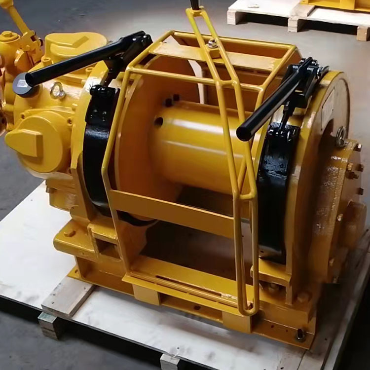 絞車由馬達(dá)總成(氣動機(jī))、制動器總成、減速機(jī)構(gòu)、卷筒、機(jī)座等主要部分組成。