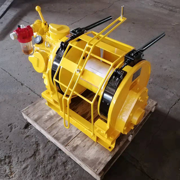 絞車由馬達(dá)總成(氣動(dòng)機(jī))、制動(dòng)器總成、減速機(jī)構(gòu)、卷筒、機(jī)座等主要部分組成。
